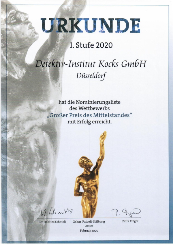 Für eine genaue und transparente Angebotserstellung benötigen wir so viele Angaben wie möglich. Erst nach einer genauen Situations- und Problemanalyse können wir ein seriöses Angebot kalkulieren. Aus diesem Grund raten wir zu einem ausführlichen Erstgespräch wo alle offenen Fragen geklärt und die wichtigsten Angaben zusammengetragen werden. Rufen Sie dazu unsere Detektive aus Düsseldorf an: 0211 408 777 0 oder außerhalb der Bürozeiten unter 0180 5408 777 (14 ct./Min, Mobile abweichend).